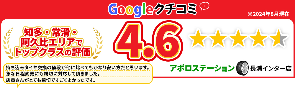 当店では、知多市・常滑市・半田市・高浜市・阿久比町・東浦町・武豊町エリアでも驚きの低価格でタイヤ交換・取付を実施しています。