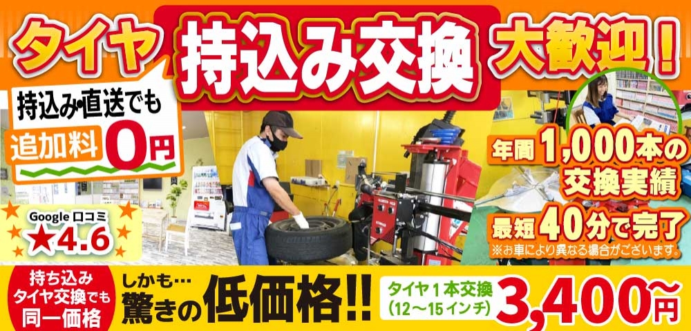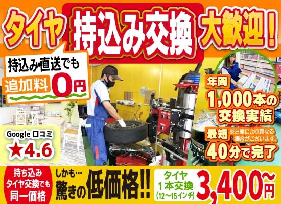 持ち込みタイヤ交換の値段が他に比べてもかなり安い方だと思います。急な日程変更にも親切に対応して頂きました。