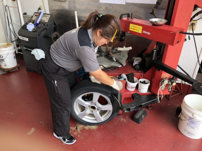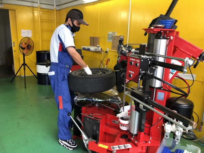 当店の国家整備士より、タイヤの交換作業をさせて頂きます。 |